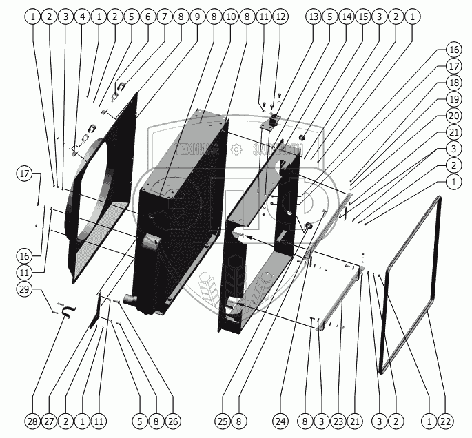 Каталог запасных частей к технике: РСМ-142 "Acros" вариант. Блок радиаторов