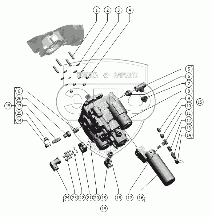 Каталог запасных частей к технике: РСМ-142 "Acros" вариант. Насос аксиально-поршневой
