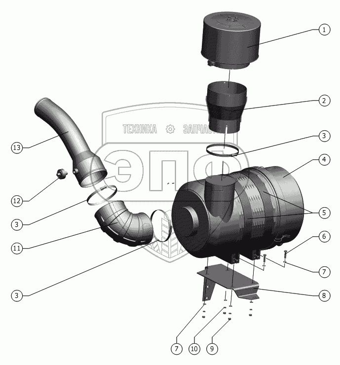 Каталог запасных частей к технике: РСМ-142 "Acros" вариант. Установка фильтров воздушных