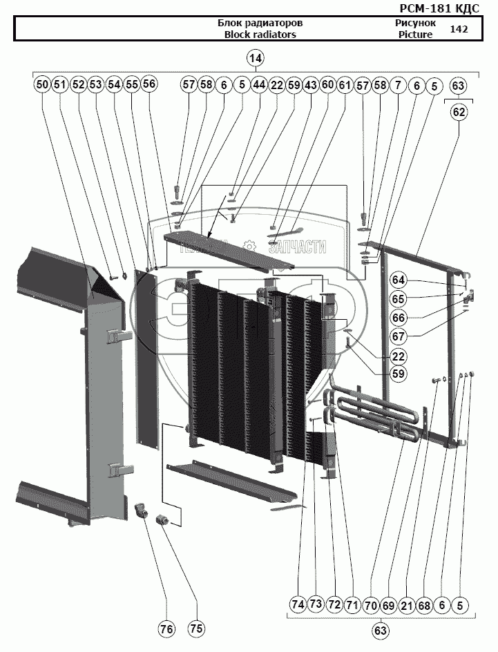 Каталог запасных частей к технике: РСМ-181 "Torum-740". Блок радиаторов