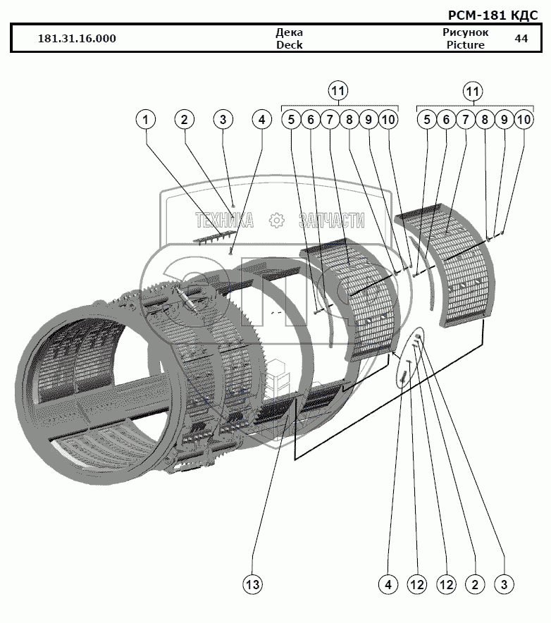 Каталог запасных частей к технике: РСМ-181 "Torum-740". Дека