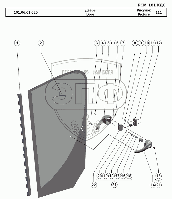 Каталог запасных частей к технике: РСМ-181 "Torum-740". Дверь