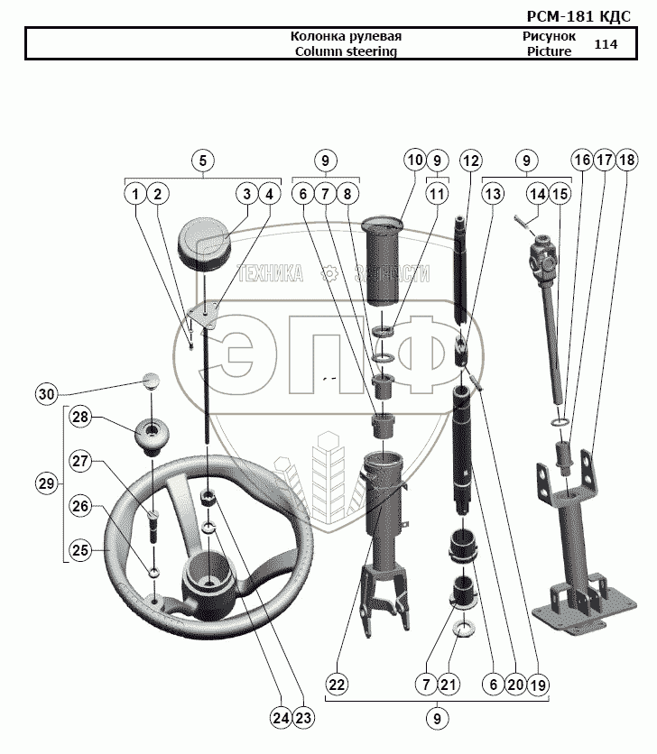 Каталог запасных частей к технике: РСМ-181 "Torum-740". Колонка рулевая