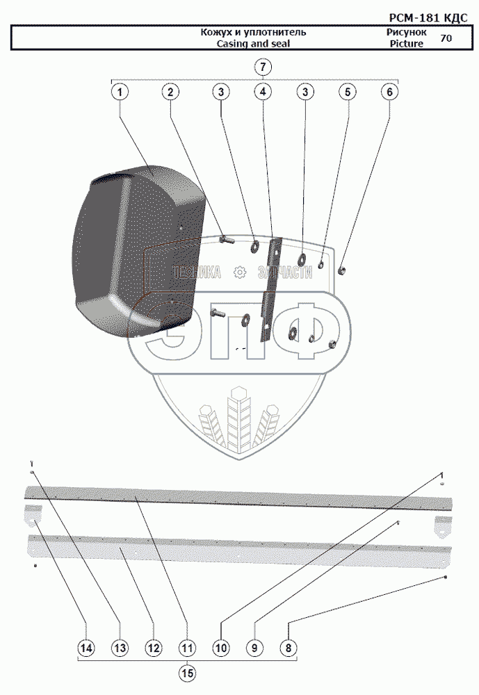 Каталог запасных частей к технике: РСМ-181 "Torum-740". Кожух и уплотнитель