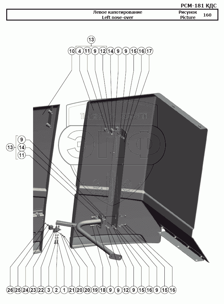 Каталог запасных частей к технике: РСМ-181 "Torum-740". Левое капотирование