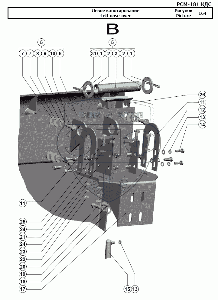 Каталог запасных частей к технике: РСМ-181 "Torum-740". Левое капотирование