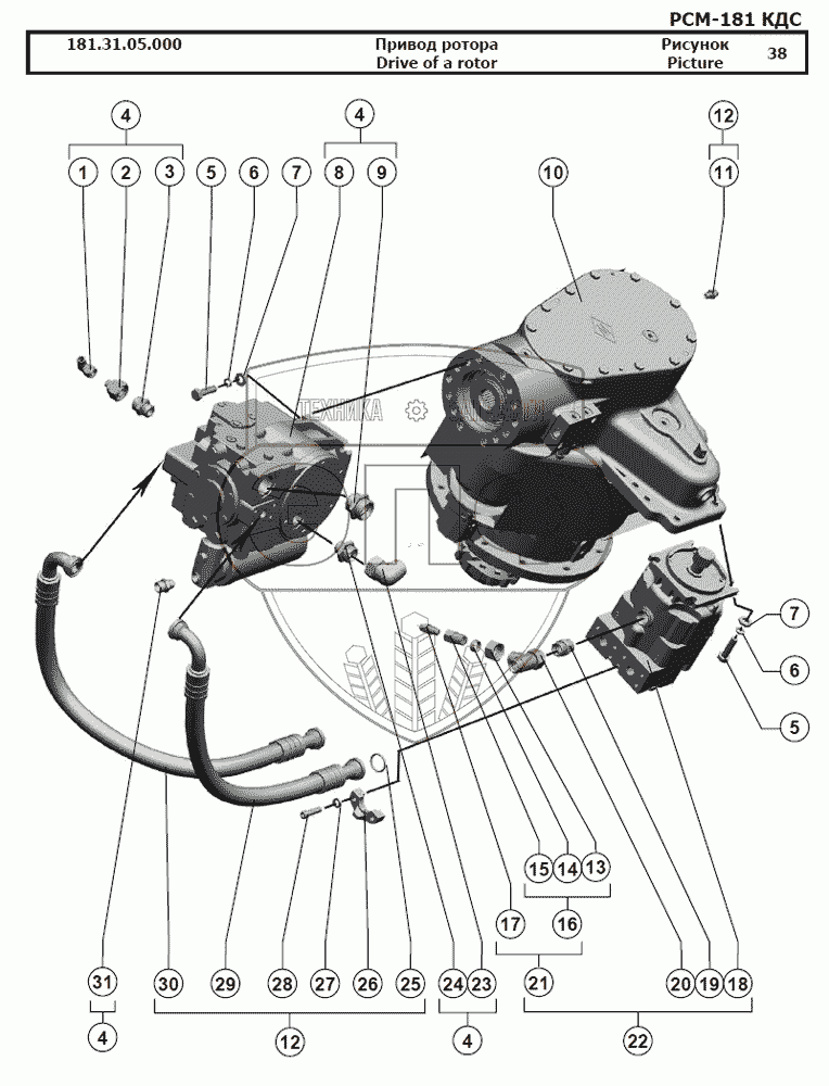 Каталог запасных частей к технике: РСМ-181 "Torum-740". Привод ротора