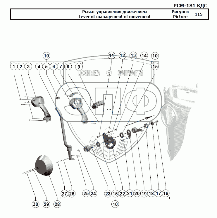 Каталог запасных частей к технике: РСМ-181 "Torum-740". Рычаг управления движением