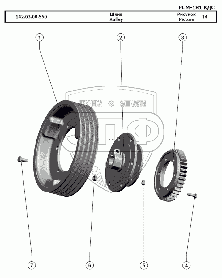 Каталог запасных частей к технике: РСМ-181 "Torum-740". Шкив