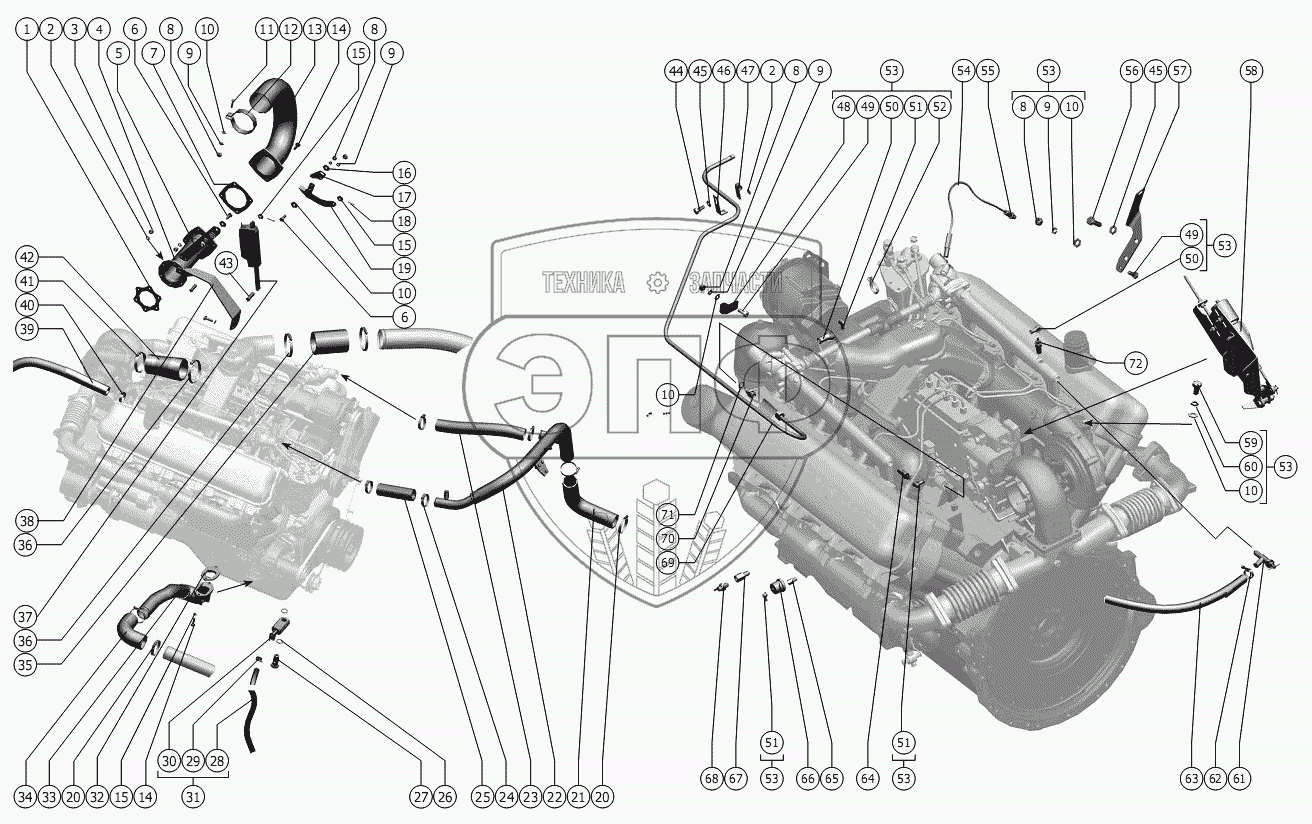 Каталог запасных частей к технике: РСМ-181 "Torum-740" (вариант). Трубопровод двигателя