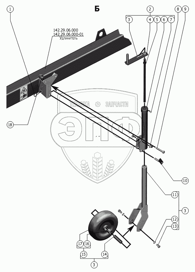 Каталог запасных частей к технике: РСМ Тележка РСМ-142.29. Колесо флюгерное