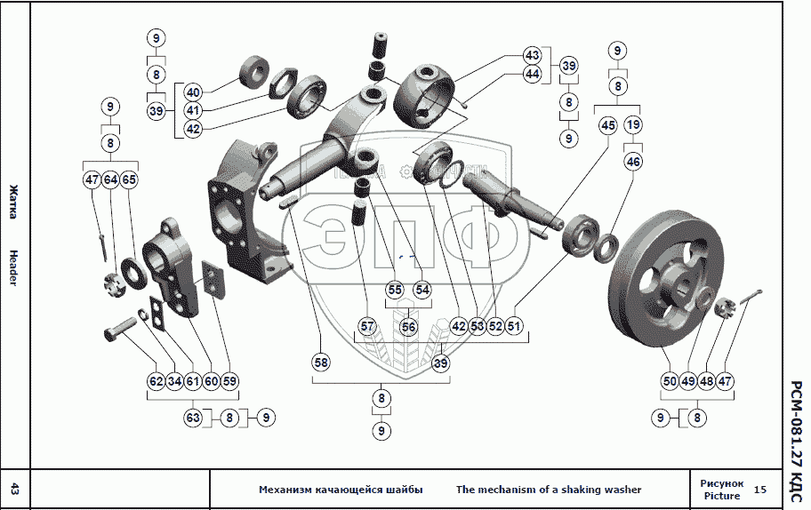 Каталог запасных частей к технике: РСМ Жатка РСМ-081.27. Механизм качающейся шайбы
