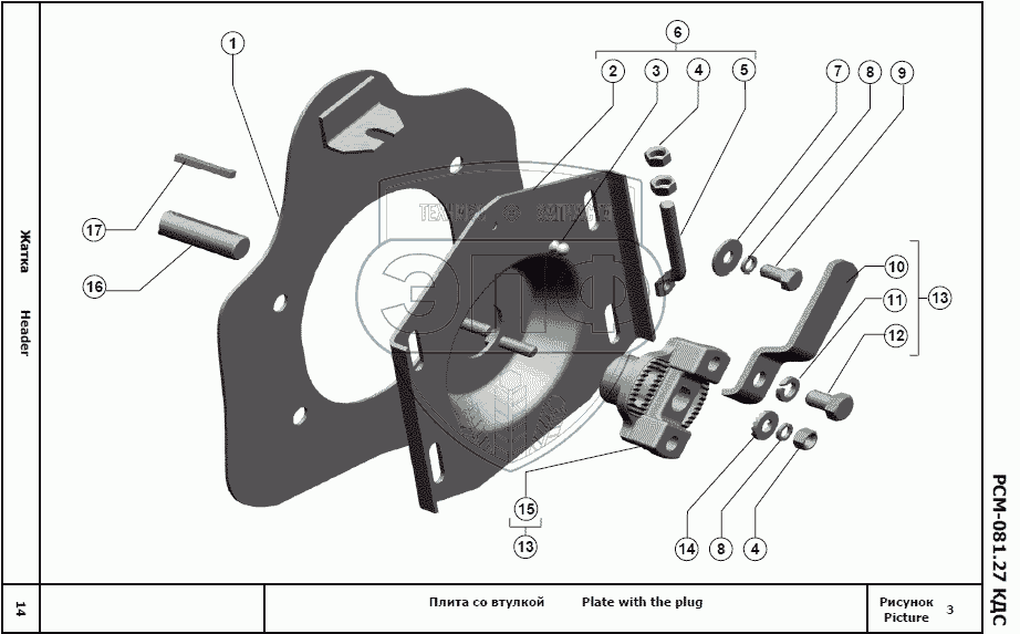 Каталог запасных частей к технике: РСМ Жатка РСМ-081.27. Плита со втулкой