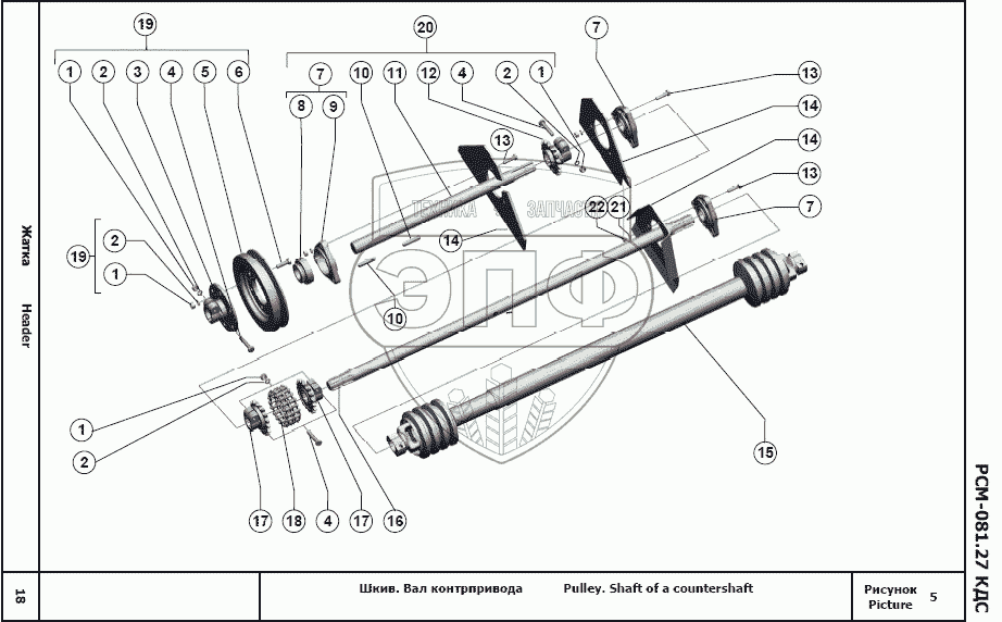 Каталог запасных частей к технике: РСМ Жатка РСМ-081.27. Шкив. Вал контрпривода