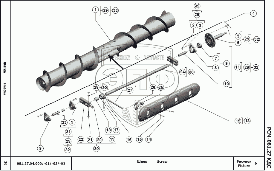 Каталог запасных частей к технике: РСМ Жатка РСМ-081.27. Шнек