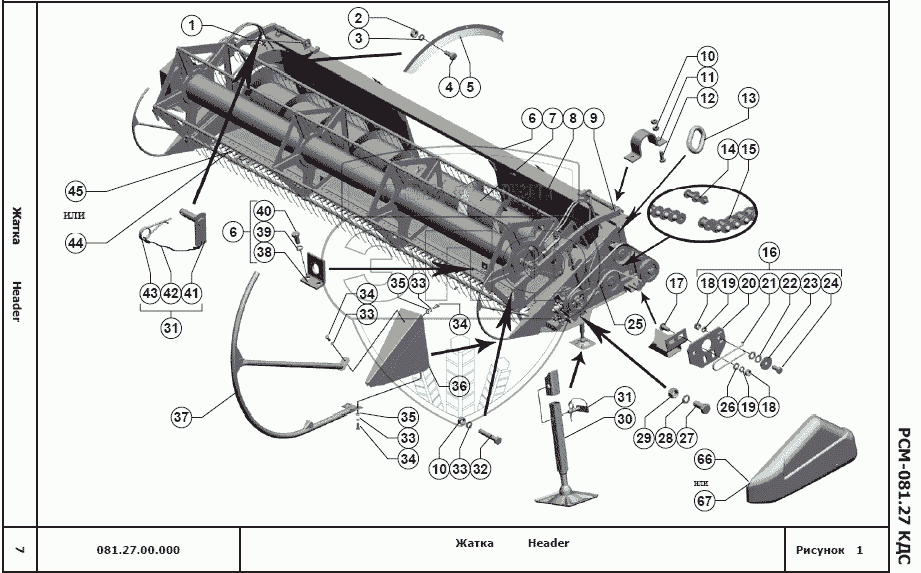 Каталог запасных частей к технике: РСМ Жатка РСМ-081.27. Жатка
