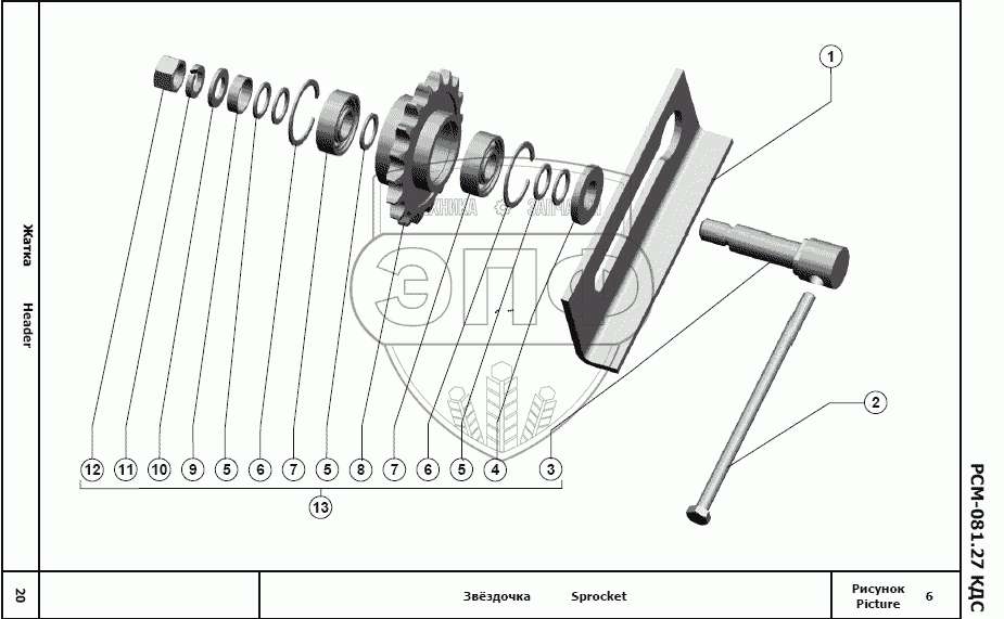 Каталог запасных частей к технике: РСМ Жатка РСМ-081.27. Звёздочка