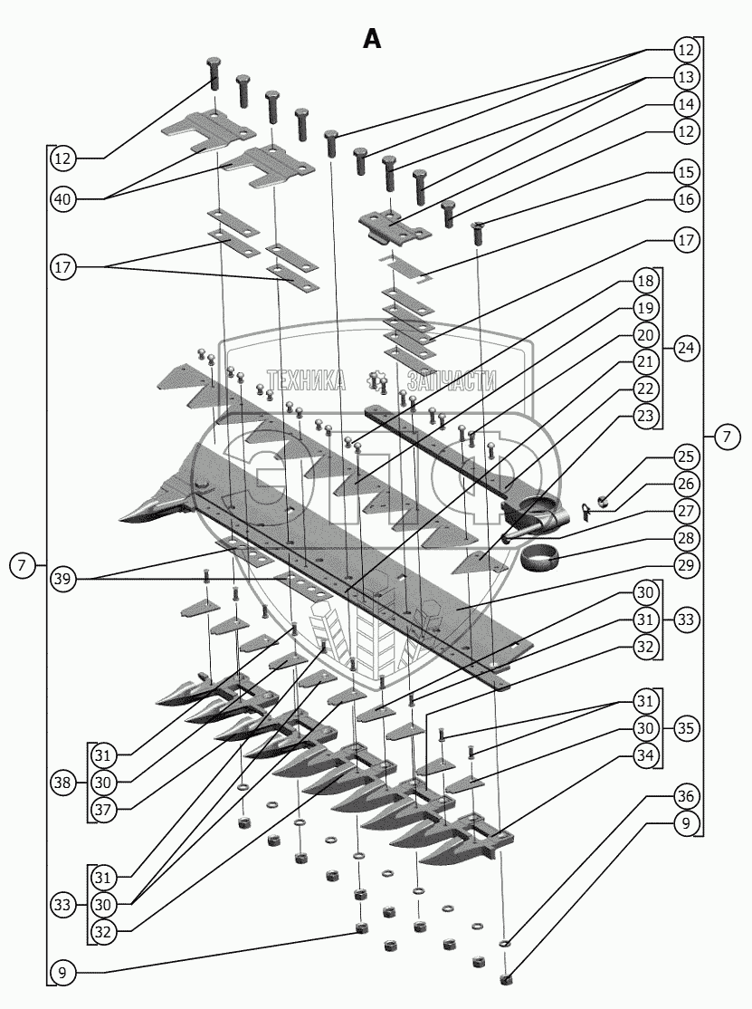 Каталог запасных частей к технике: РСМ Жатка РСМ-100.70, 1401.70. Аппарат режущий