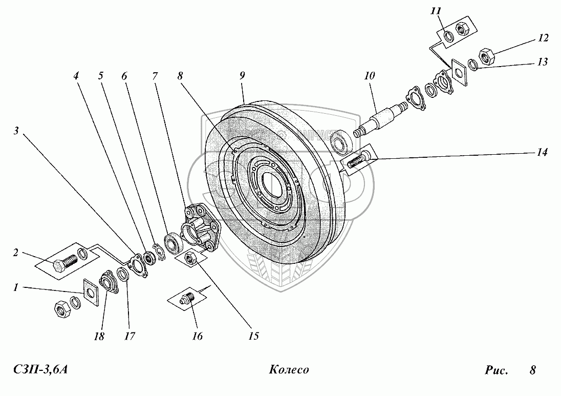 Каталог запасных частей к технике: Сибсельмаш СЗП-3,6А. Колесо