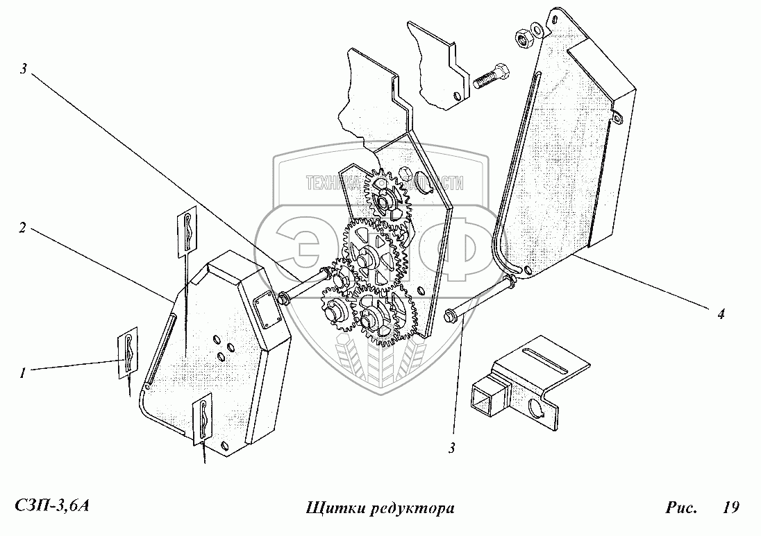 Каталог запасных частей к технике: Сибсельмаш СЗП-3,6А. Щитки редуктора