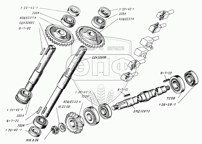 Каталог запасных частей к технике: ТеКЗ БМ-6А. Редуктор. Валы и шестерни