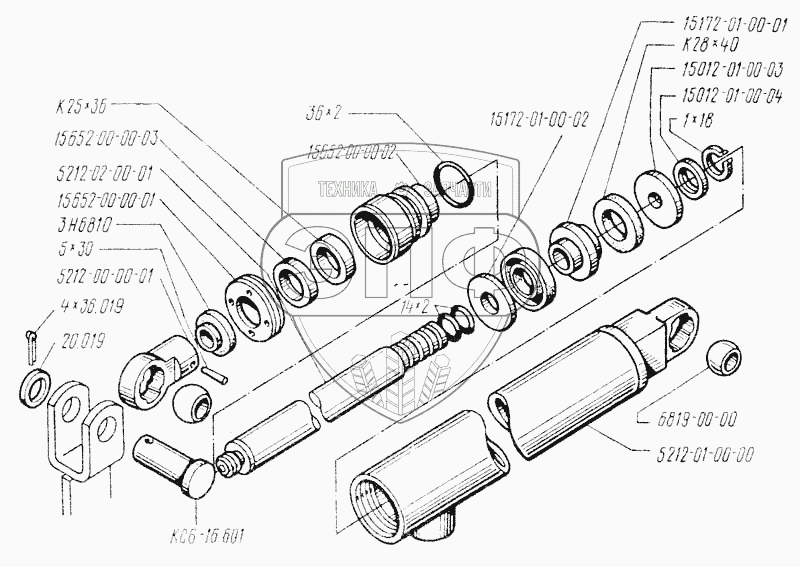 Каталог запасных частей к технике: ТКЗ КС-6Б. Гидроцилиндр
