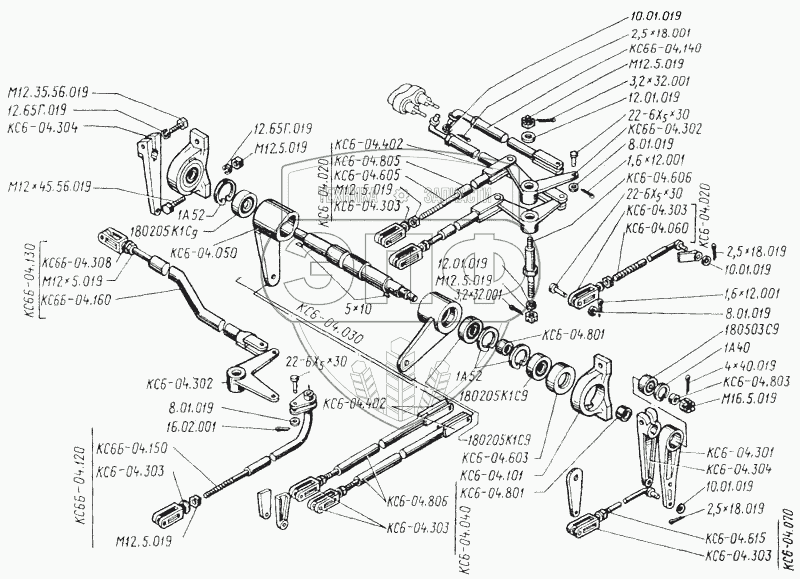 Каталог запасных частей к технике: ТКЗ КС-6Б. Механизм управления мостом ведущих колес