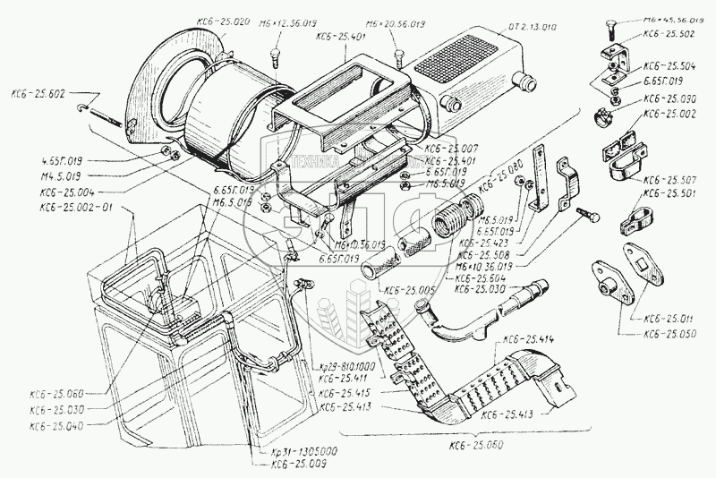 Каталог запасных частей к технике: ТКЗ КС-6Б. Обогрев кабины
