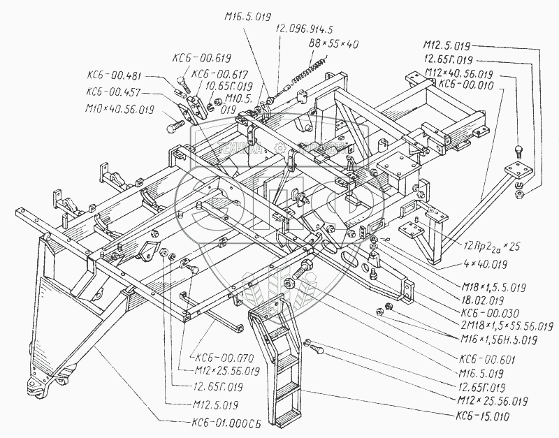 Каталог запасных частей к технике: ТКЗ КС-6Б. Рама основная. Трап
