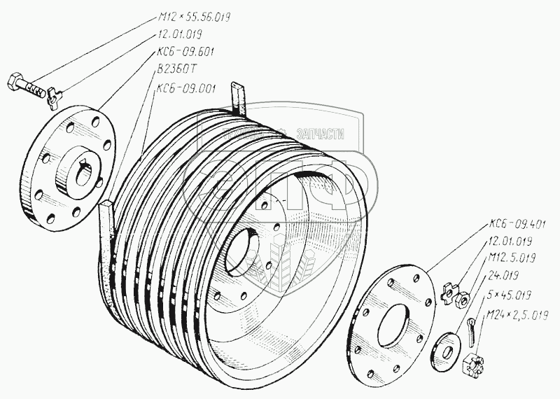 Каталог запасных частей к технике: ТКЗ КС-6Б. Редуктор. Шкив
