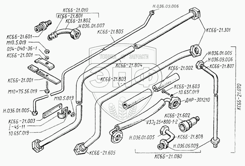 Каталог запасных частей к технике: ТКЗ КС-6Б. Система трубопроводов гидротрансмиссии