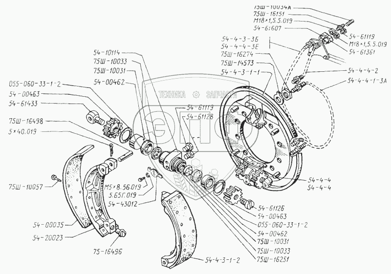 | 54-4-3-1-1 | 54-4-3-1-1 | Щит тормоза в сборе | Нет на складе | |