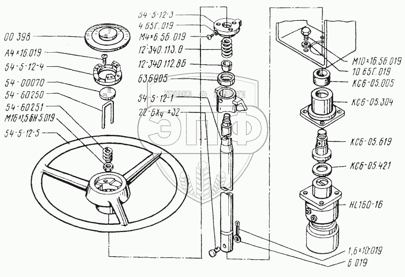 Каталог запасных частей к технике: ТКЗ КС-6Б. Управление рулевое