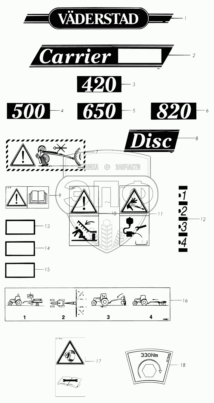 Каталог запасных частей к технике: Vaderstad Carrier CR420-820. Decals CR 420-820