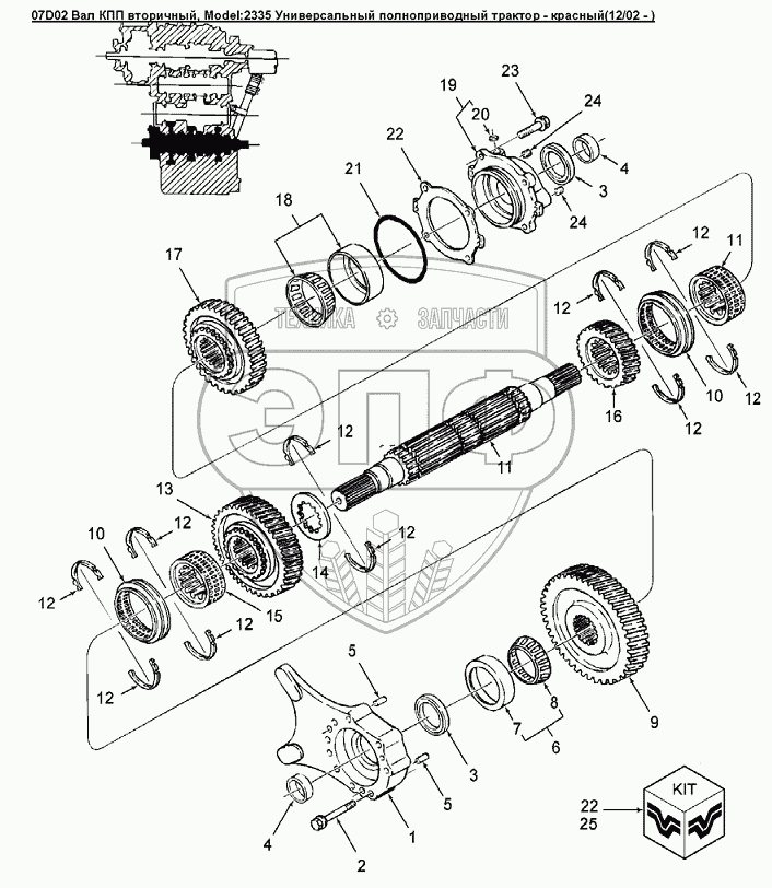 Каталог запасных частей к технике: Versatile серии 2000. 07D02 Вал КПП вторичный