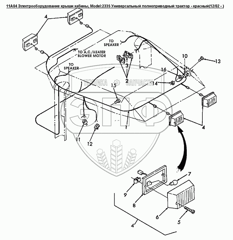 Каталог запасных частей к технике: Versatile серии 2000. 11A04 Электрооборудование крыши кабины