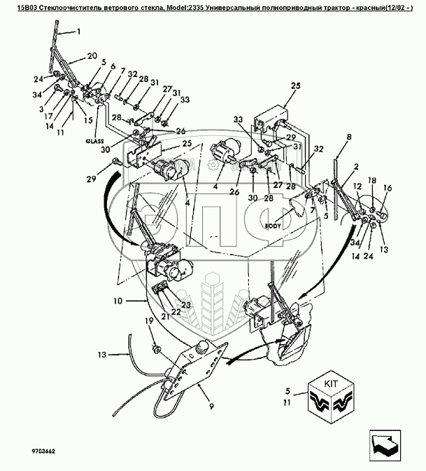 Каталог запасных частей к технике: Versatile серии 2000. 15B03 Стеклоочиститель ветрового стекла