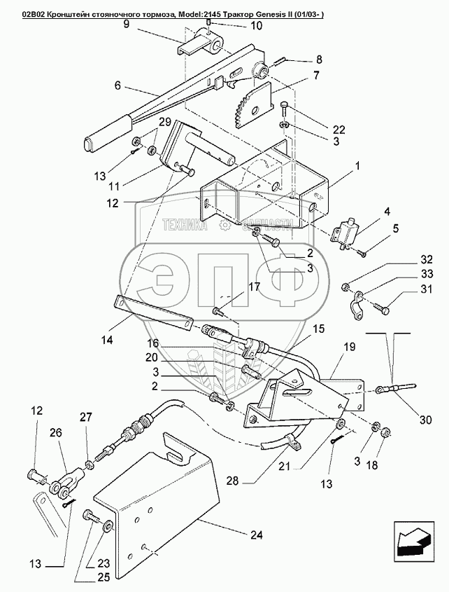 Каталог запасных частей к технике: Versatile серии GENESIS. 02B02 Кронштейн стояночного тормоза