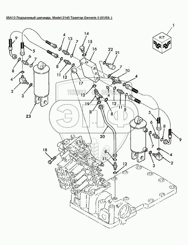 Каталог запасных частей к технике: Versatile серии GENESIS. 05A12 Подъемный цилиндр