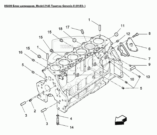 Каталог запасных частей к технике: Versatile серии GENESIS. 06A09 Блок цилиндров