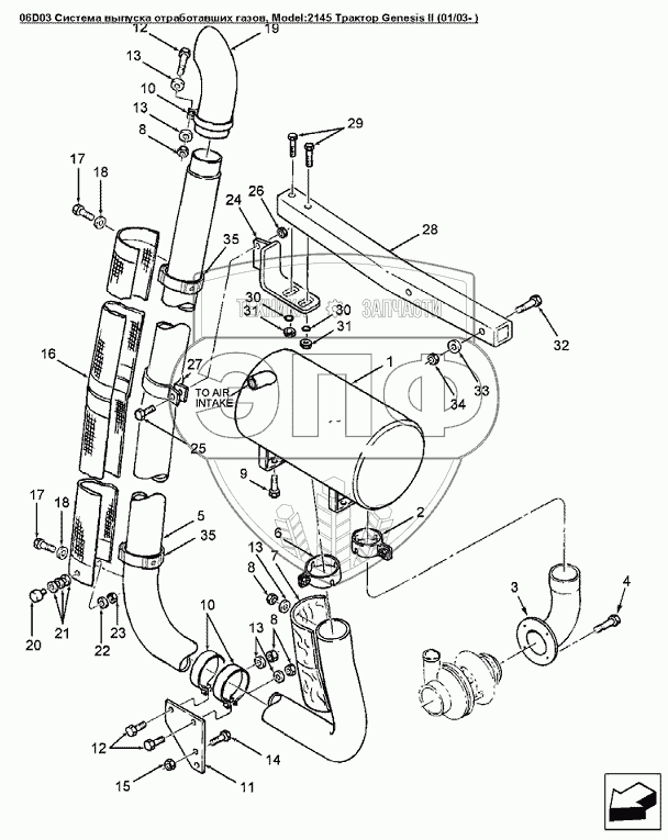 Каталог запасных частей к технике: Versatile серии GENESIS. 06D03 Система выпуска отработавших газов