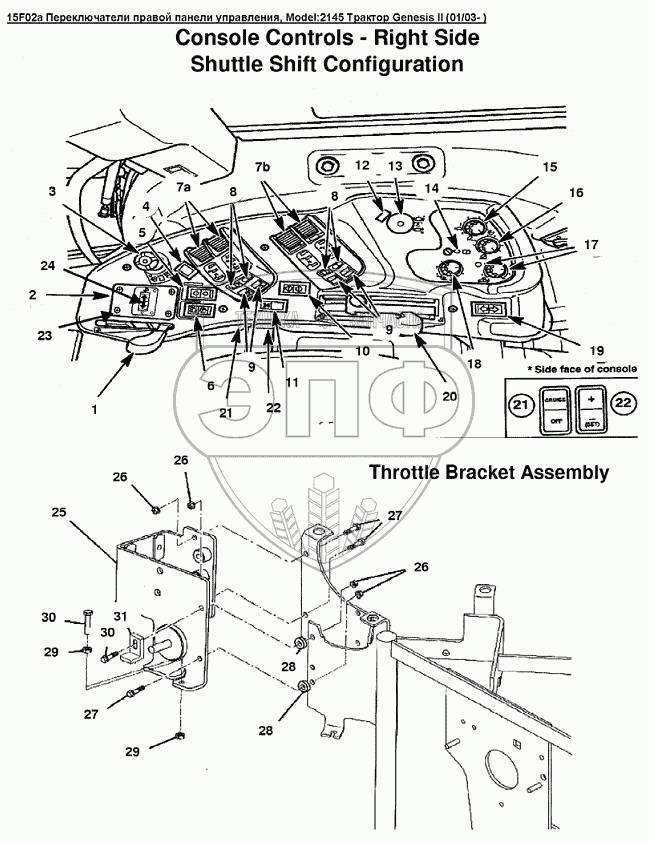 Каталог запасных частей к технике: Versatile серии GENESIS. 15F02a Переключатели правой панели управления