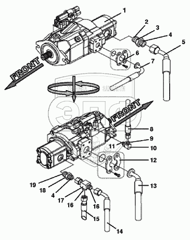 Каталог запасных частей к технике: Versatile серии HHT. 6HTP02 Подключение гидравлического насоса