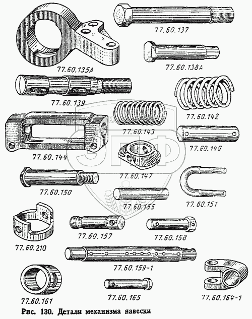 Каталог запасных частей к технике: ВгТЗ ДТ-75М. Детали механизма навески