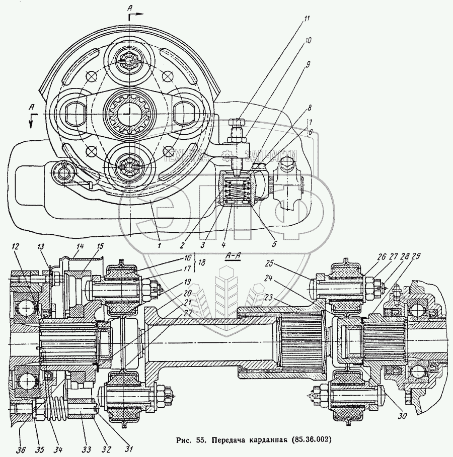 Каталог запасных частей к технике: ВгТЗ ДТ-75М. Передача карданная (85.36.002)
