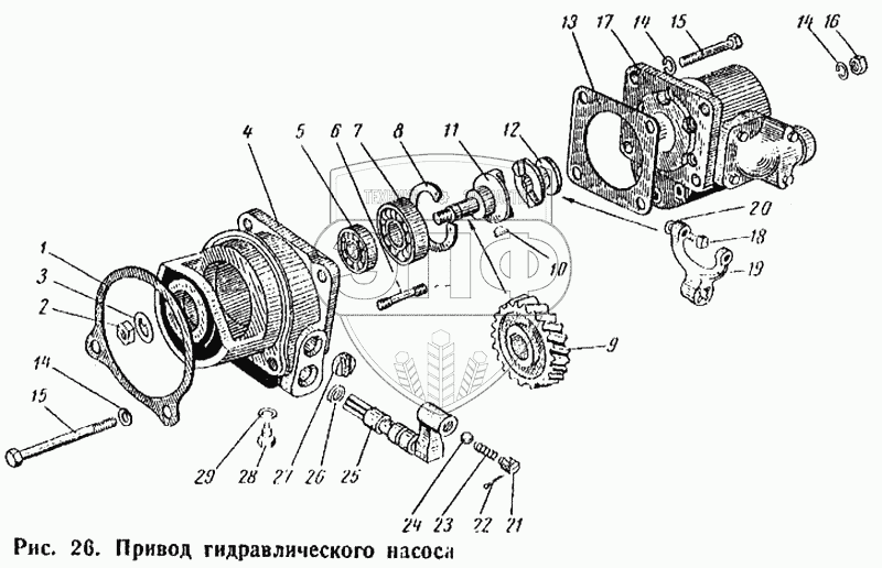 Каталог запасных частей к технике: ВгТЗ ДТ-75М. Привод гидравлического насоса