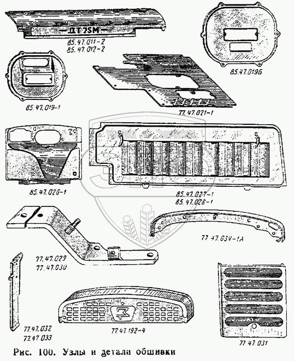 Каталог запасных частей к технике: ВгТЗ ДТ-75М. Узлы и детали обшивки