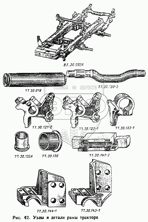 Каталог запасных частей к технике: ВгТЗ ДТ-75М. Узлы и детали рамы трактора