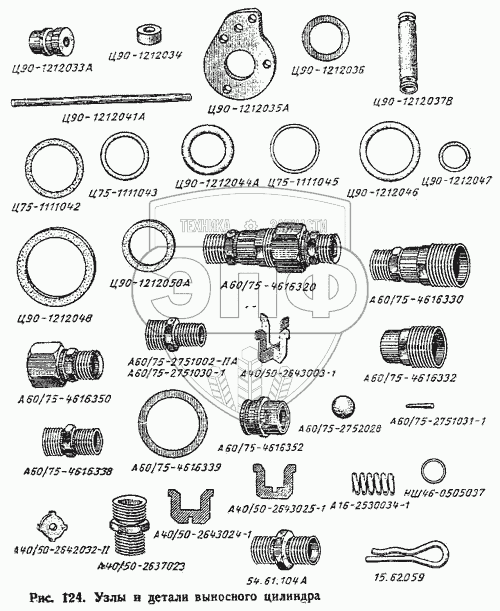 Каталог запасных частей к технике: ВгТЗ ДТ-75М. Узлы и детали выносного цилиндра