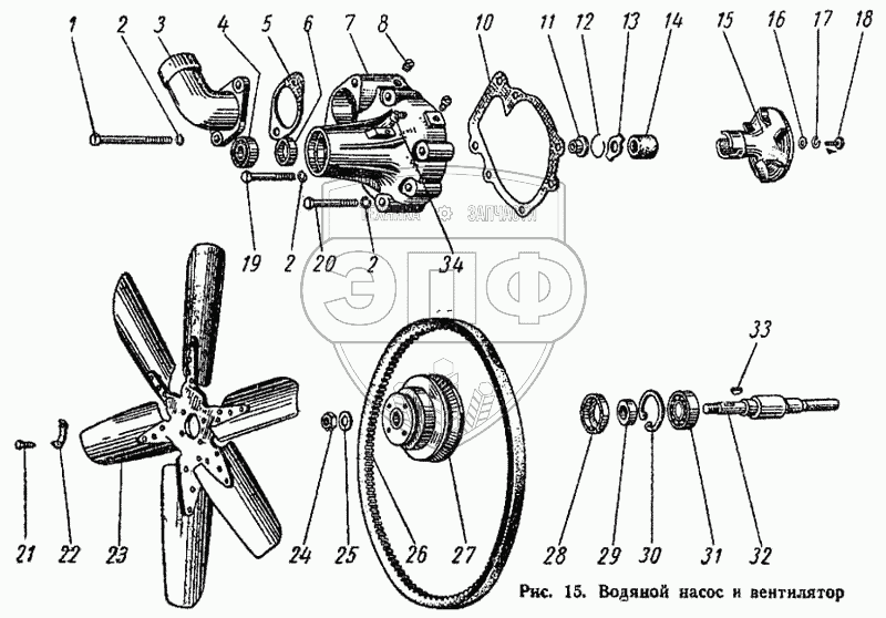 Каталог запасных частей к технике: ВгТЗ ДТ-75М. Водяной насос и вентилятор